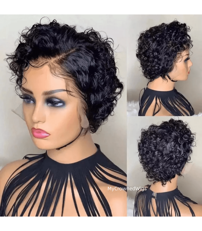 Cheap Wigs For Women human Hair Pixie Cut curly Wig [LFW04]