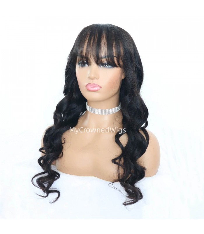 Brazilian virgin 5*5 HD lace closure loose wave bang wig [HCW114]
