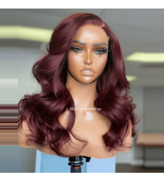 5*5 undetectable burgundy color body wave HD lace closure human hair wig【hcw119】